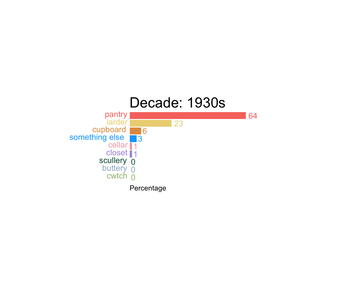 Pantry emerged as the dominant term used to describe a room in a house for storing food.
