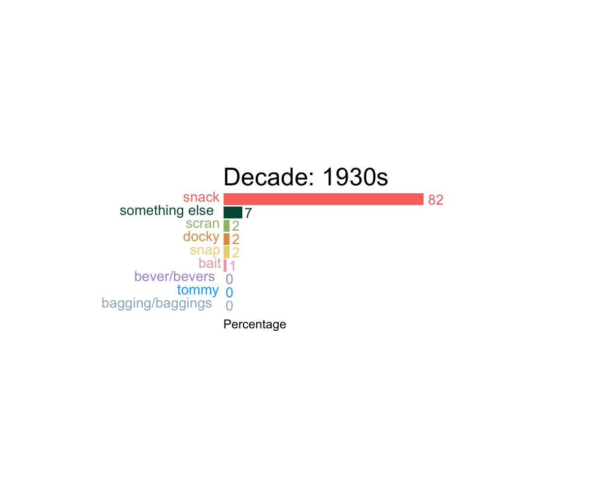 The term bait is also used in Cumbria, Northumberland, County Durham and North Yorkshire, but its popularity seems to be waning among young speakers. Meanwhile, snap remains a popular term in South Yorkshire, and its use also extends to Derbyshire, Staffordshire and Birmingham. The term bagging is only used infrequently in parts of the north-west now, but it is being used by some 18-24-year-olds, so there may be life in bagging yet!